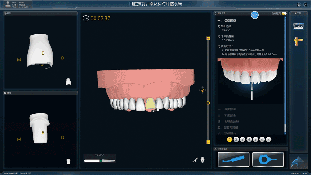 在同學們進行備牙訓練時,當前步驟備牙量達到臨床要求的標準時,系統(tǒng)會自動跳轉到下一個步驟,提醒