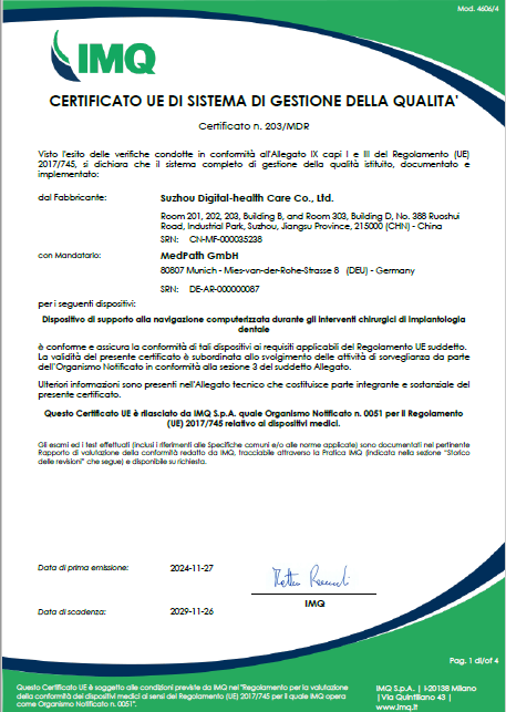 近日,迪凱爾的口腔種植手術(shù)導(dǎo)航設(shè)備獲得國(guó)際權(quán)威檢測(cè)、檢驗(yàn)、認(rèn)證機(jī)構(gòu)歐盟CE認(rèn)證。歐盟CE認(rèn)證是歐盟國(guó)家實(shí)行的強(qiáng)制性產(chǎn)品安全認(rèn)證制度。獲得CE認(rèn)證,意味著產(chǎn)品取得進(jìn)入歐洲市場(chǎng)的護(hù)照,具備在歐盟市場(chǎng)上進(jìn)行自由銷售流通的資格。體現(xiàn)了迪凱爾在口腔種植導(dǎo)航領(lǐng)域的技術(shù)實(shí)力,助力迪凱爾實(shí)現(xiàn)品牌國(guó)際化、產(chǎn)品全球化的戰(zhàn)略目標(biāo)。